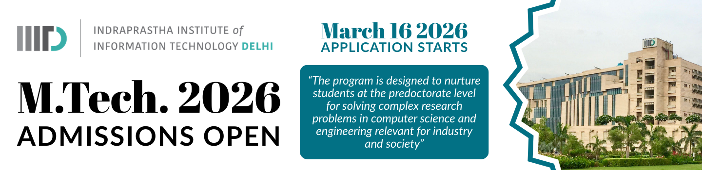 IIIT-Delhi is accelerating on the path of becoming one of the leading comprehensive research-led teaching institutes in India and has proven to be consistently responsive towards the evolving needs of society. The faculty members at IIIT-Delhi are among the finest in the country and are internationally recognized. Carrying out cutting-edge research is in the institutional DNA of IIIT-Delhi.