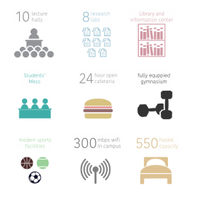 At present, the hostels have options of single and double occupancy rooms, all of which are air-conditioned. All hostel students are completely free to move around the campus at all times, and some of the study areas are open 24x7 for the benefit of students. In order to provide 24X7 medical cover for our Faculty, Staff and students both staying in hostel and day scholars the Institute has setup an Infirmary at Ground Floor in the girl's hostel.